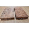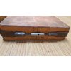 Masivní retro krájecí deska je vyrobena z tvrdého dřeva a stáhnutá kovem.