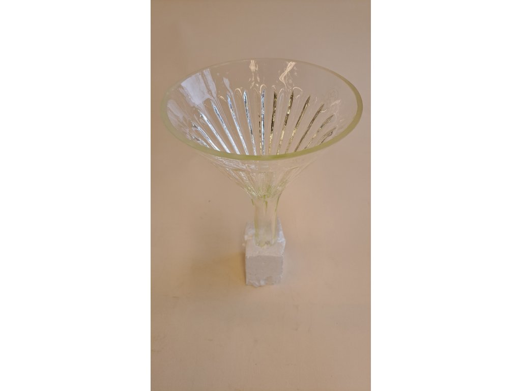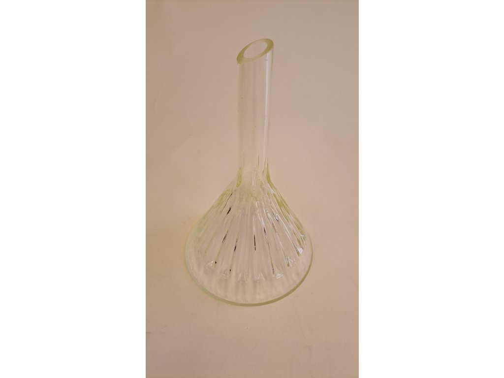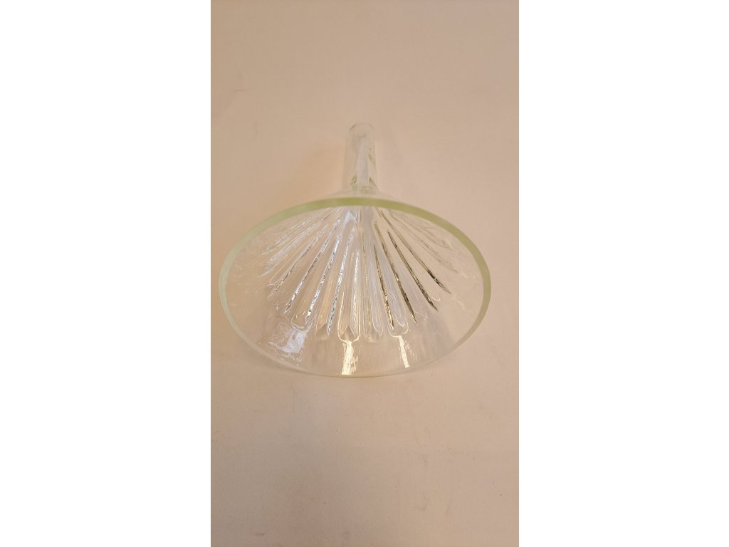 Skleněná žebrovaná nálevka , trychtýř se zkoseným stonkem