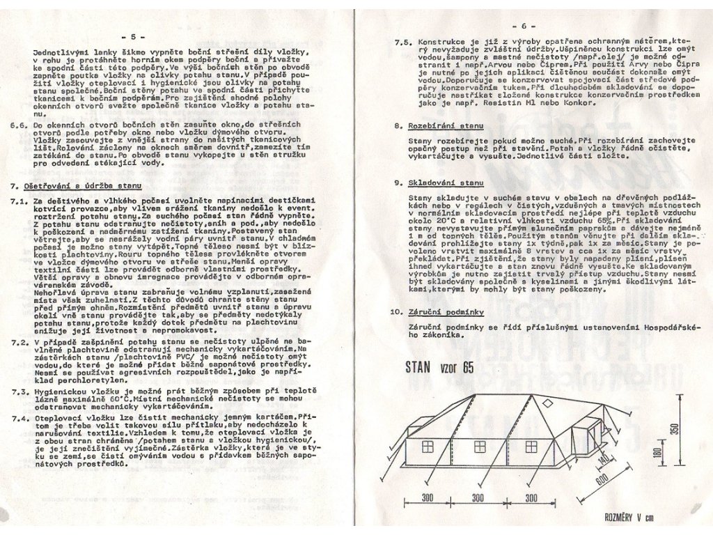 - Vojenský stan S-65 doporučujeme vybavit zejména hygienickou vložkou S-65 a pro chladné počasí vložkou oteplovací