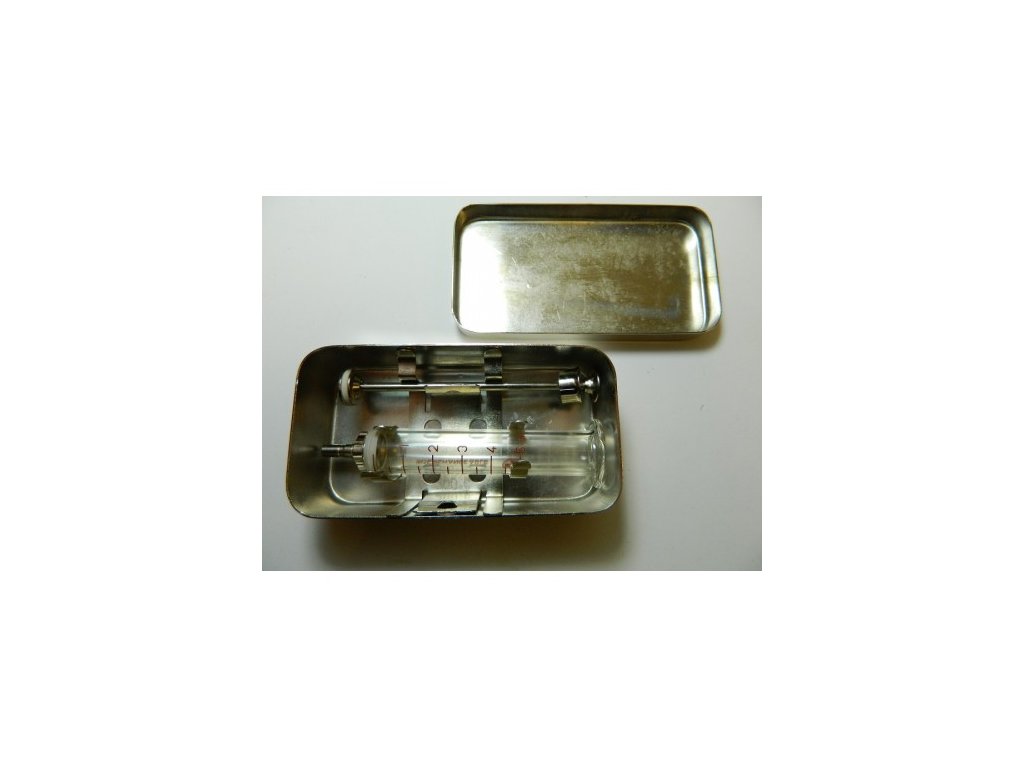 Injekční skleněná stříkačka o objemu 2 ml v nerezové krabičce