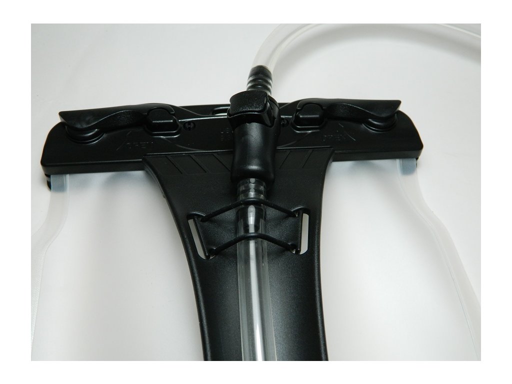 Spojka hadice se zpětným ventilem vám umožní odpojení a vyjmutí rezervoáru z batohu bez nutnosti provlékat hadici s ventilem.