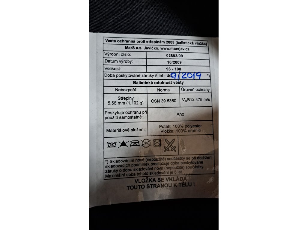 - Prošlá balistická ochrana - slouží ke sběratelským účelům !!!!!